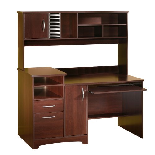7246787 South Shore Furniture Computer Center, Contemporary, Royal Cherry. This multi-level workspace/computer center is large enough to store any of your items without creating a cluttered look in your room. This exceptionally functional computer center has heavy duty construction due to the increased board thickness, and is definitely a great addition to any home office. Its deep, Royal Cherry finish will bring elegance to your decor.